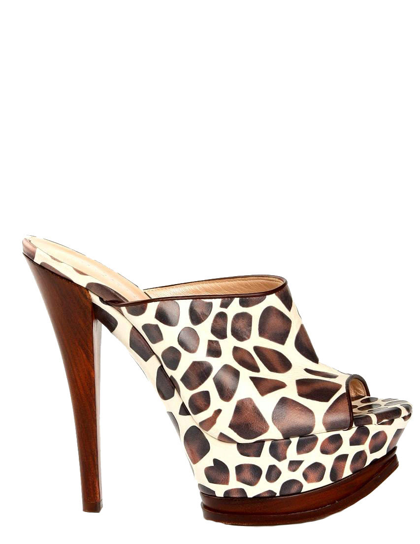 - Sul tallone - modelli eleganti adatti a qualsiasi abito estivo e alcuni set con pantaloni. Alcuni modelli sono grandi amici con abiti da sera. Ad esempio, zoccoli sui talloni. Ma le scarpe sono chiuse, con un naso massiccio e un tacco largo - non l'opzione più femminile, quindi dovresti stare attento con lui. Pesano visivamente la gamba.