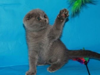 Le chaton du chat écossais, même s'il est encore petit, a les habitudes d'un adulte représentant de la race. À 2 mois, les bébés sont doux, curieux et très joueurs.