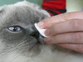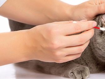Les yeux et les oreilles des chats écossais doivent être examinés régulièrement. Ces animaux ont généralement des oreillettes propres, mais quand une plaque apparaît en eux, la contamination est éliminée avec un coton-tige.Lors du nettoyage des oreilles, vous pouvez utiliser une lotion spéciale.