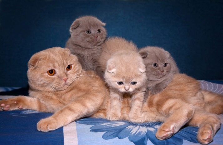 Dans la progéniture des Écossais, les signes sont divisés. Dans ce cas, les chatons à la double oreille et les chatons à la ligne droite naissent. La race peut inclure des chatons avec ou sans traits mutants. Entre eux, les chatons n'ont pas de différences particulières, en plus de la forme des oreilles. Pour éviter toute déformation du squelette d'un animal, il est utile de croiser des représentants droits et mal dressés de la race. Les plis chez les bébés peuvent être simples, doubles, triples.