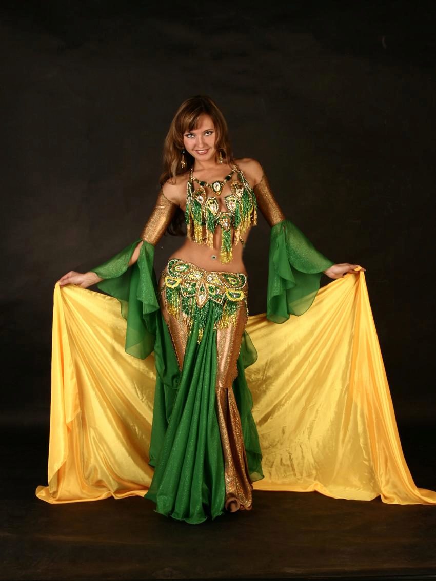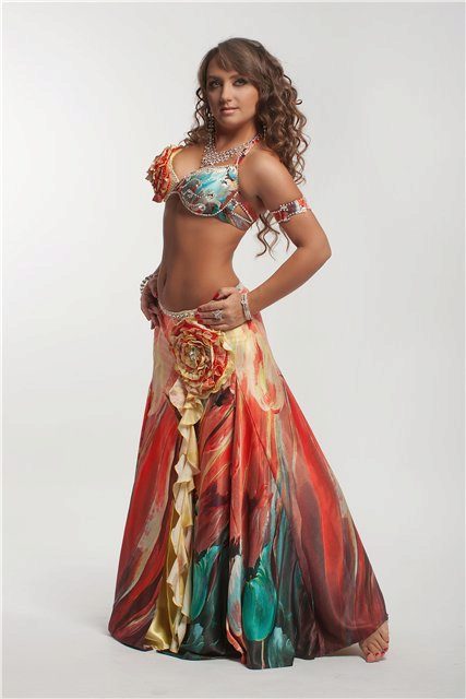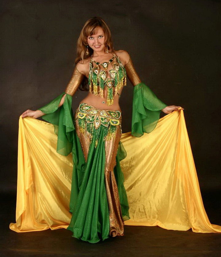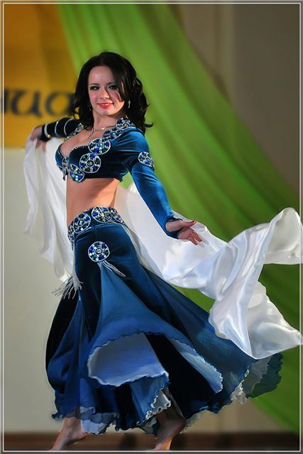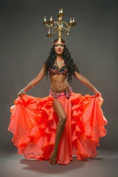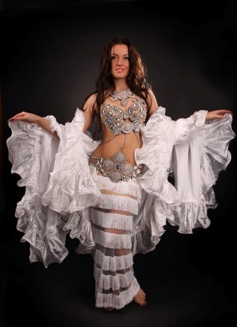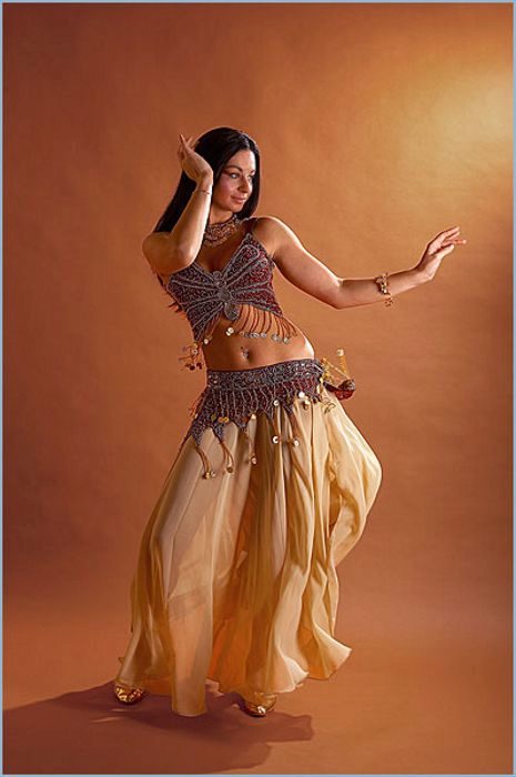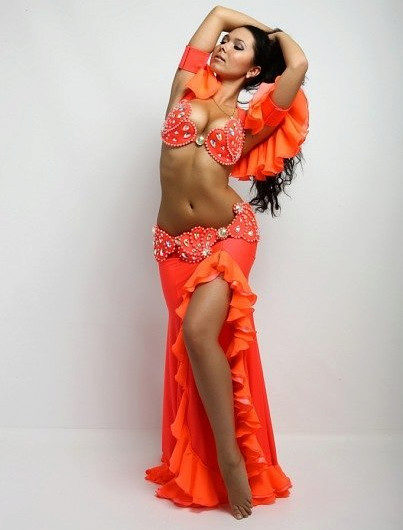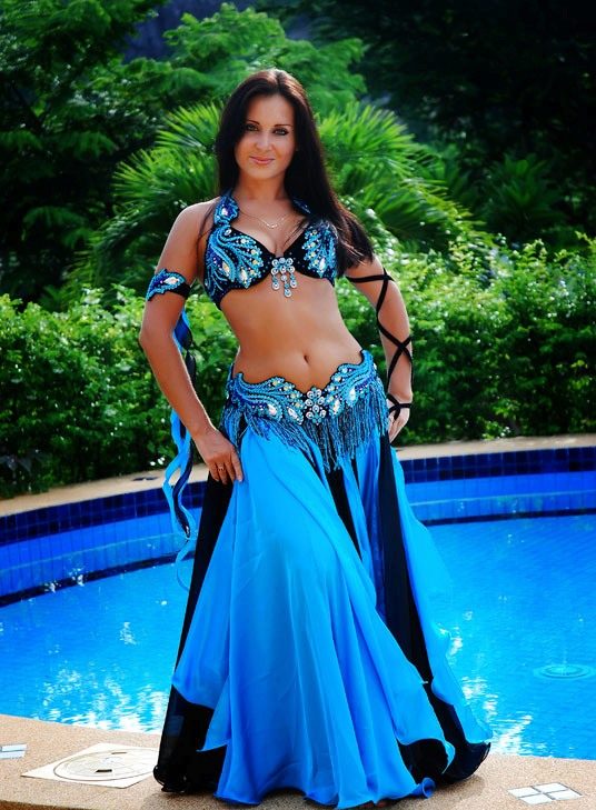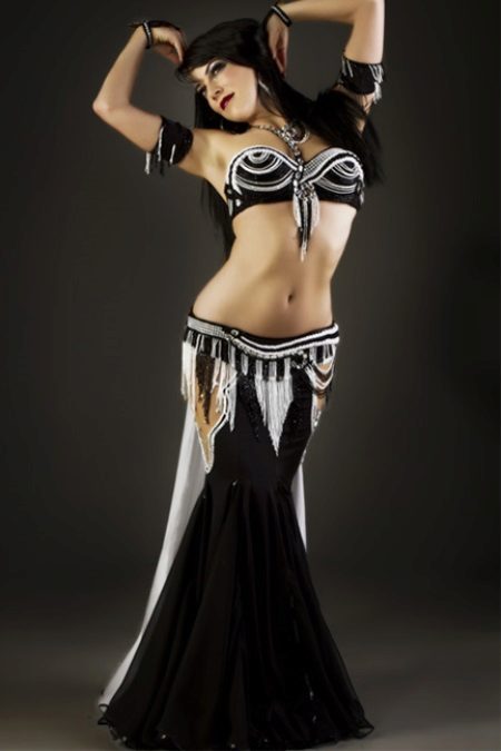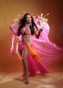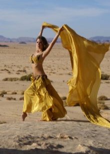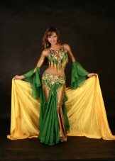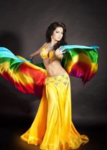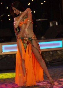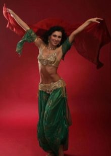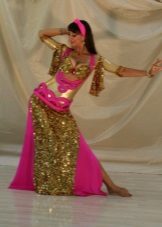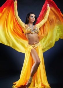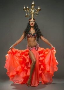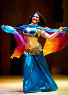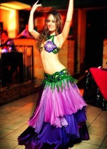 La tenue spectaculaire de la danseuse définit la moitié du succès de la danse orientale. Il présente favorablement la dignité de la figure et masque les défauts, augmente visuellement l'amplitude des mouvements et accentue toutes les courbes du corps. Le costume oriental a toujours l'air luxueux, brillant, étincelle d'une multitude de décorations brillantes.