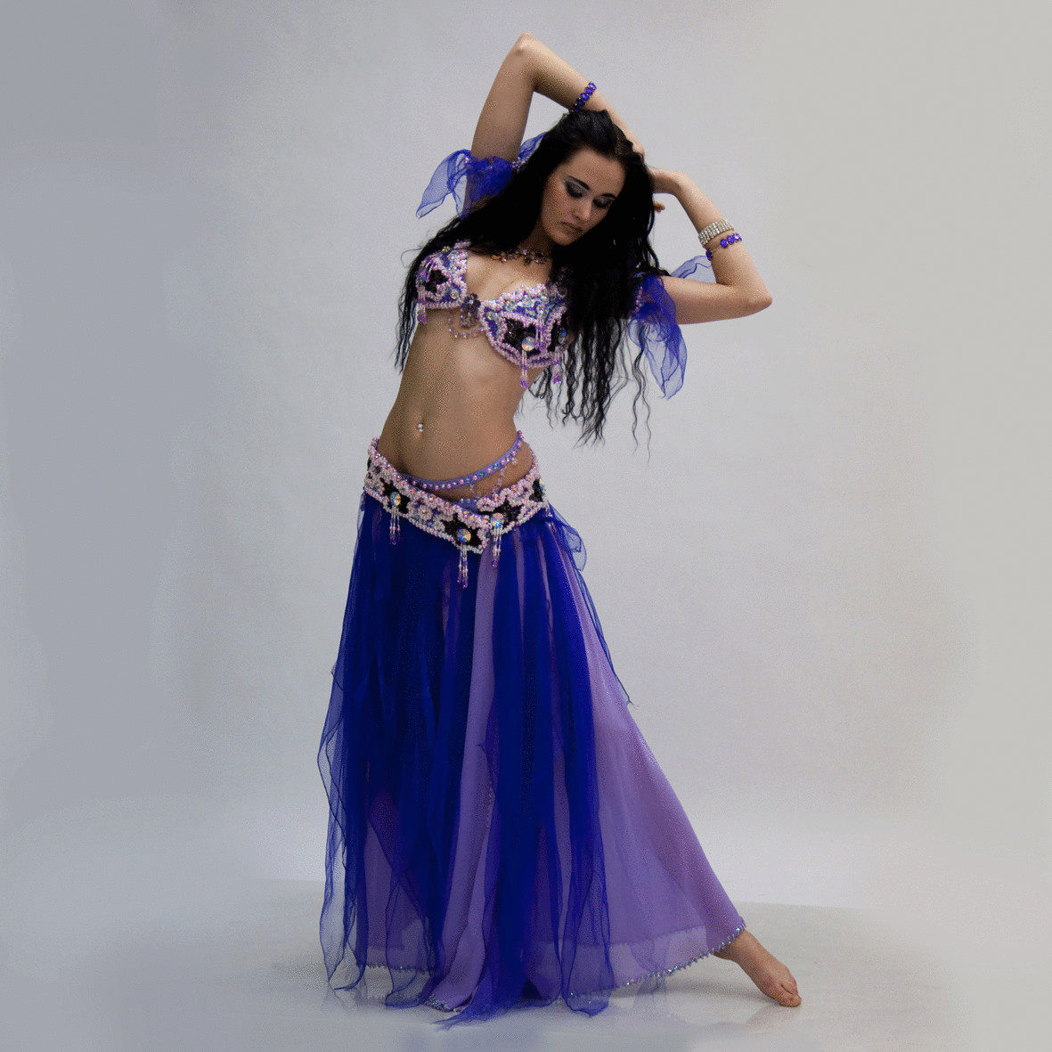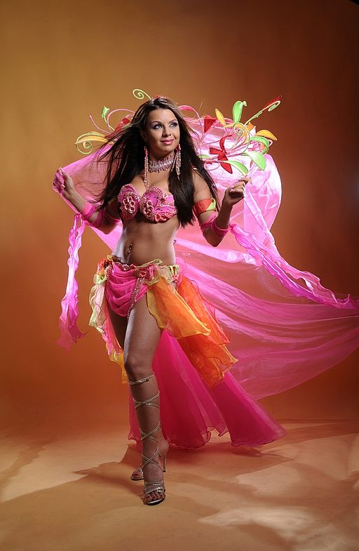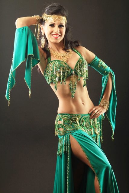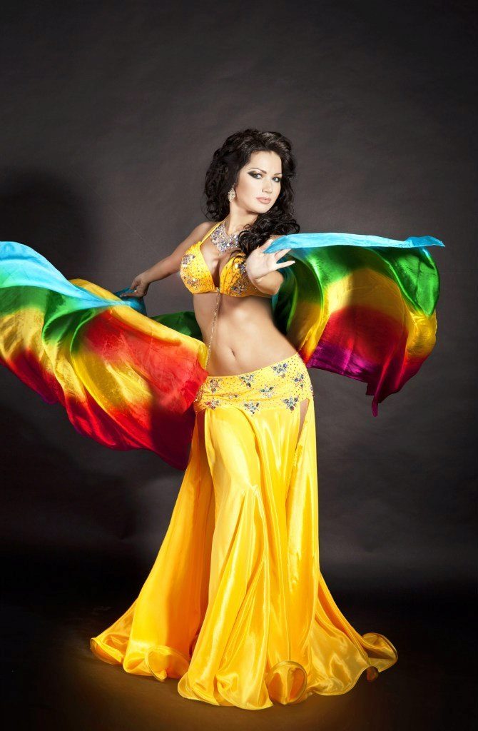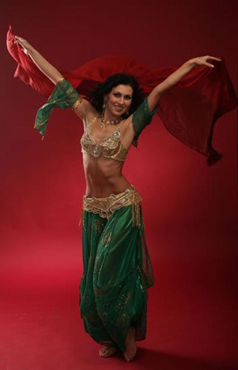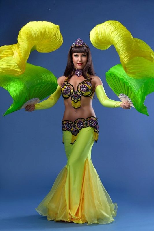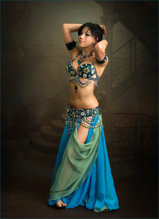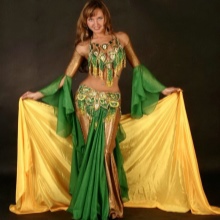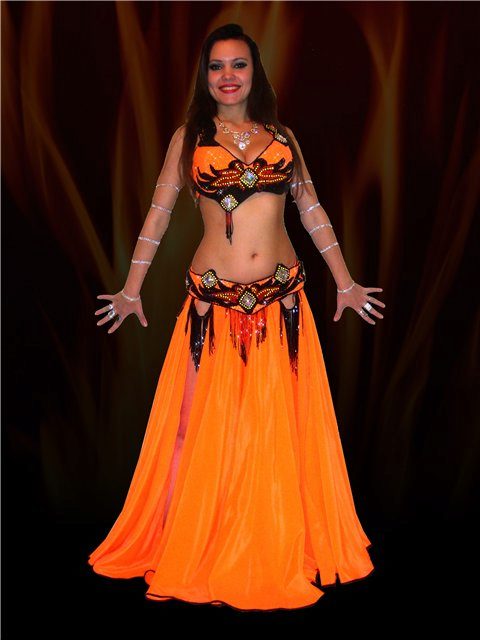 La tenue spectaculaire de la danseuse définit la moitié du succès de la danse orientale. Il présente favorablement la dignité de la figure et masque les défauts, augmente visuellement l'amplitude des mouvements et accentue toutes les courbes du corps. Le costume oriental a toujours l'air luxueux, brillant, étincelle d'une multitude de décorations brillantes.