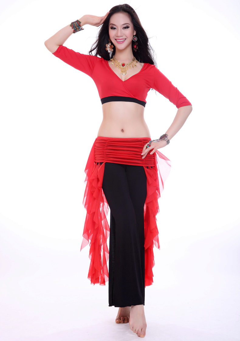 Un vêtement nécessaire à un danseur est une ceinture ou un châle orné de monistes et d'autres riches décors. Pendant les mouvements de la beauté orientale, ces détails de vêtements noués aux hanches résonnent mélodieusement, augmentant le rythme de la danse. La ceinture dense est généralement cousue à une large bande élastique pour bien s’asseoir sur les hanches et ne pas bouger. Le châle a un forum rectangulaire ou triangulaire, décoré avec une belle frange.