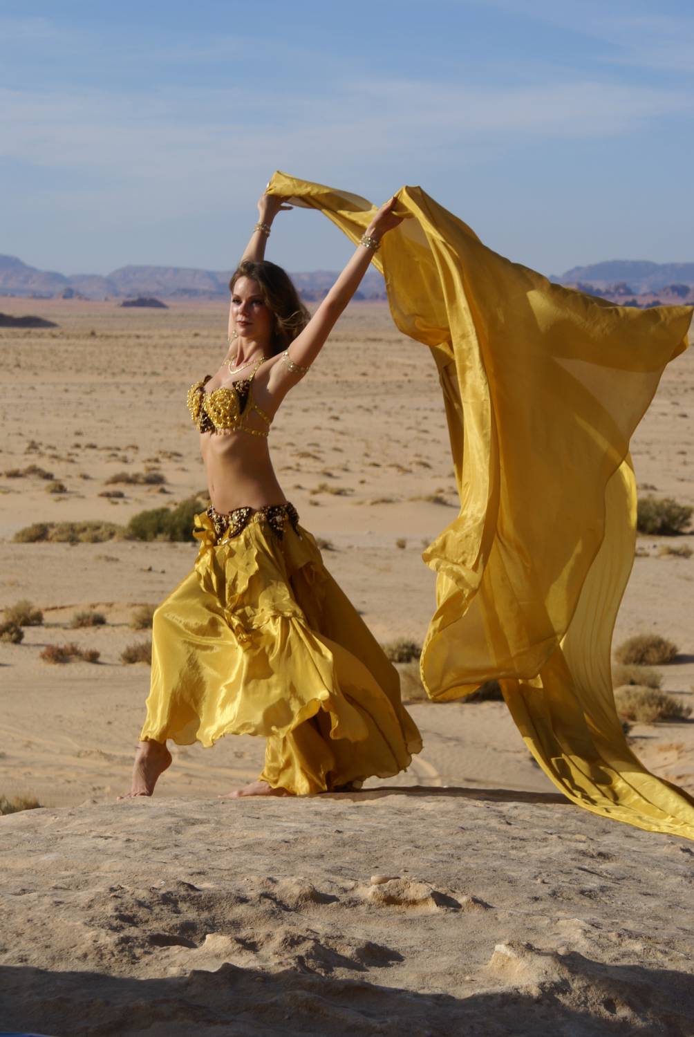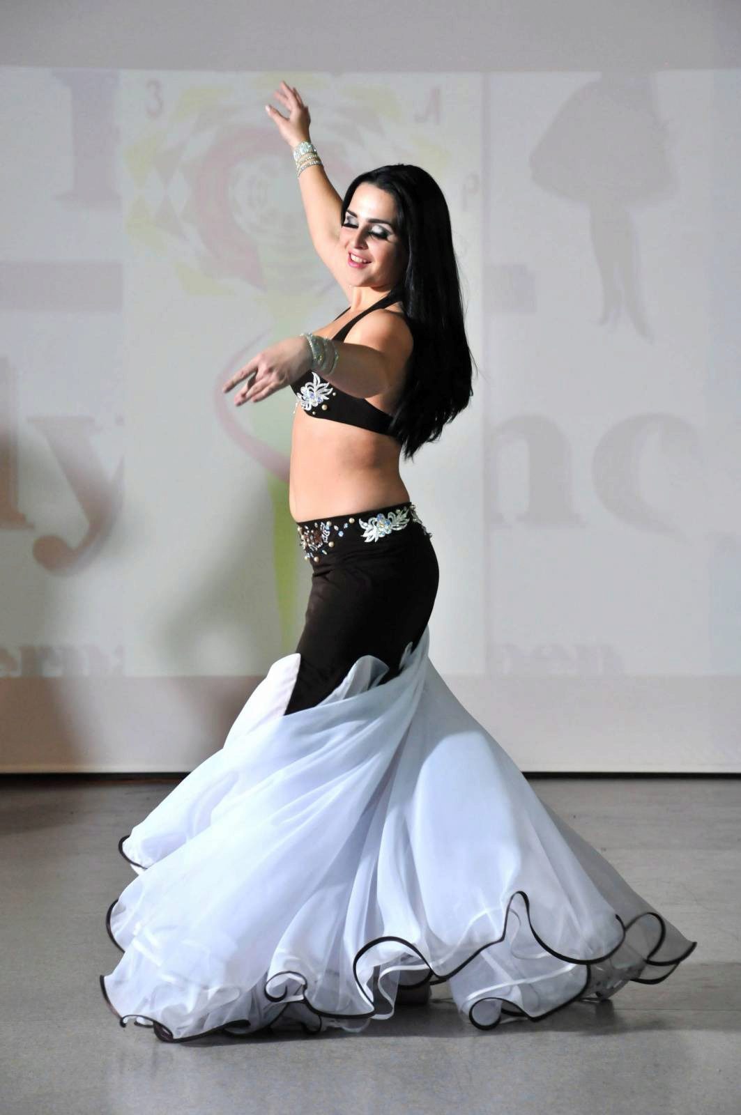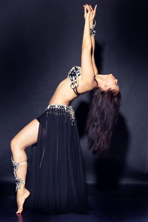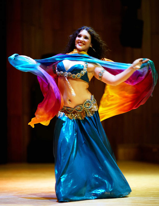 Le ventre dans un costume oriental classique reste ouvert, car la danse le montre. Mais il existe des variantes vestimentaires avec un voile couvrant cette partie du corps, spécialement conçues pour les représentations devant un public conservateur.