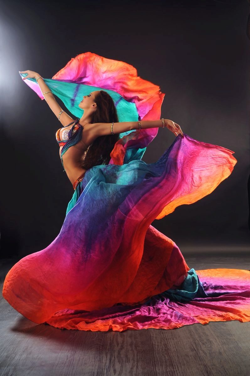 En général, la couleur du corsage, de la jupe et du foulard doit avant tout correspondre à votre sens de l'énergie de la danse. Par exemple, pour une image particulièrement passionnée, choisissez une couleur de base rouge ou noire. Pour les plus chastes, blanc ou argent.
