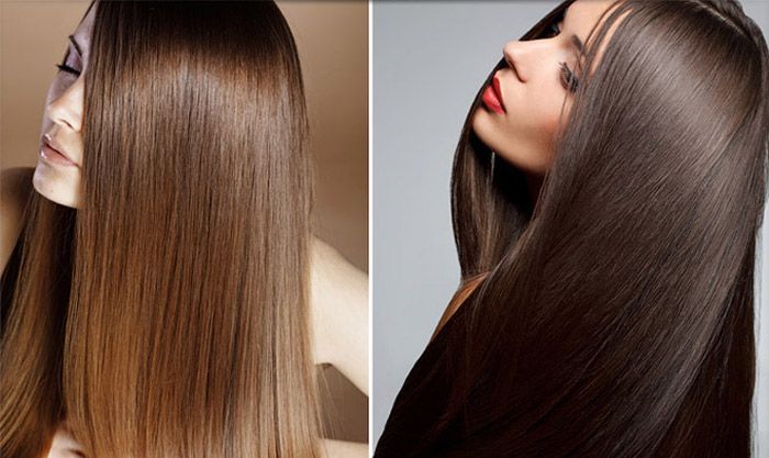 La deuxième option est la coloration des cheveux avant la procédure. Cette option est considérée comme plus favorable. À l’aide d’une séance de lissage, la couleur sera scellée à l’intérieur des cheveux et conservera l’effet pendant longtemps, elle sera également saturée.