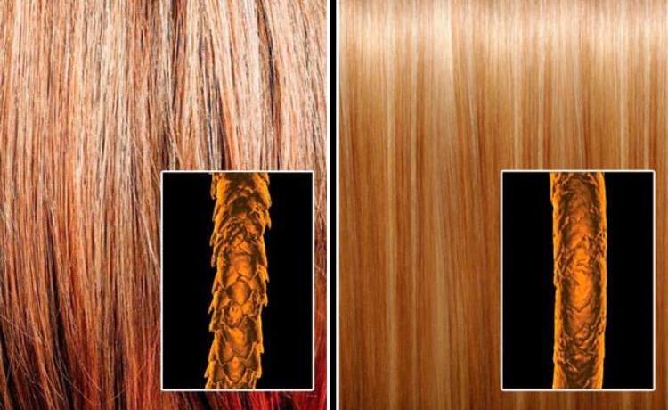 La biopolymère kératine vous permet d'obtenir un effet similaire, car c'est l'élément principal de la structure du cheveu. Cet élément crée l’intégrité des cheveux et, avec l’aide du thermodurcissement, forme une couche protectrice.