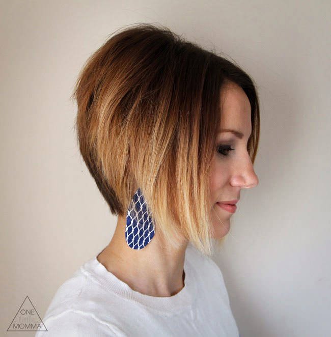 - Ombre. Une méthode populaire, dont l'essence est la combinaison de nuances claires et sombres. Cela implique une transition en douceur du ton des racines aux pointes et vice versa. Les couleurs peuvent être proches dans le ton (différer de 2-3) ou contrastées. Pour créer une ombra sur cheveux courts, utilisez des teintes très à la mode (bleu, rose et vert). Ce type de coloration peut diversifier toute coupe de cheveux.