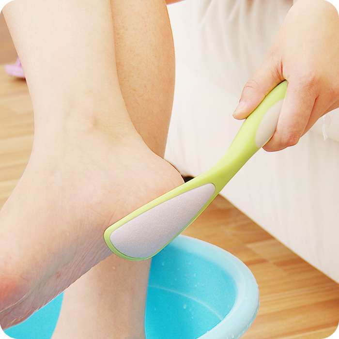 - Nettoyer la peau avec des brosses dures, de la pierre ponce. En raison de l'exposition fréquente de poussière et de petits grains de sable, la peau des jambes peut devenir rugueuse et des fissures peuvent en résulter. Par conséquent, chaque jour, vous avez besoin de mouvements circulaires pour traiter les zones les plus dures, en éliminant l'excès de peau.