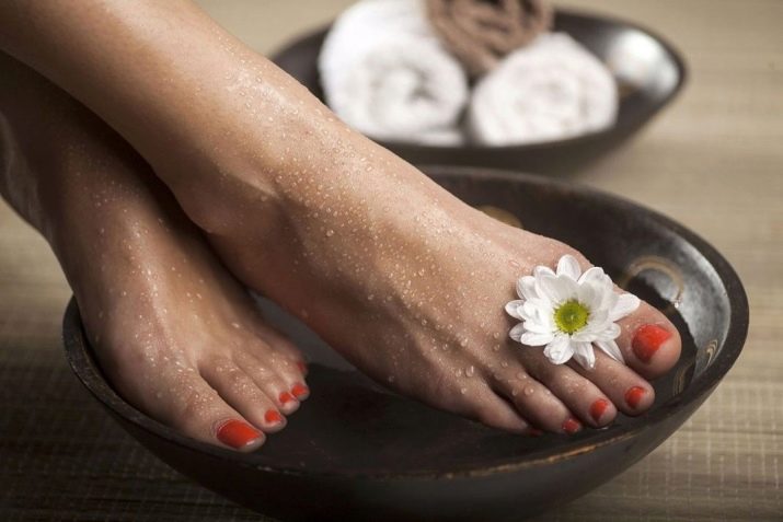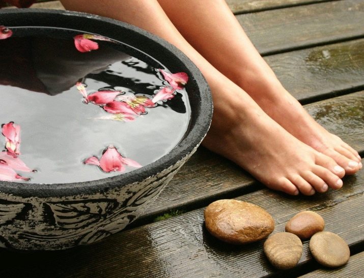 Il faut garder à l'esprit que l'eau dure dessèche encore plus la peau.Par conséquent, après la procédure, les jambes et la zone située entre les doigts sont essuyées avec un chiffon doux, puis la crème est appliquée. En tant qu'événement supplémentaire, vous pouvez diluer le bain avec du sel et des préparations à base de plantes, qui sont écrits ci-dessus.