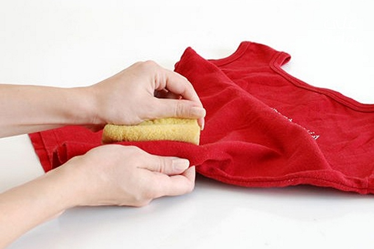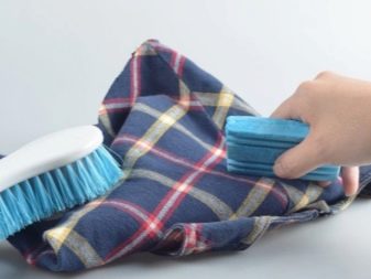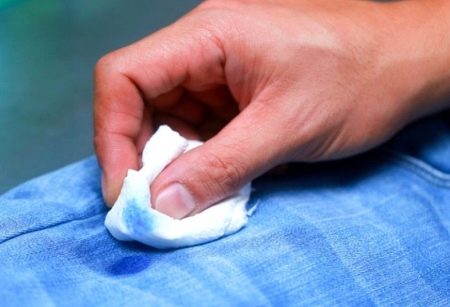 En utilisant un coton-tige ou un chiffon, le produit sélectionné est appliqué sur la surface contaminée, après quoi la mousse est nettoyée avec un chiffon avec une brosse. Ensuite, les vêtements doivent être bien lavés.