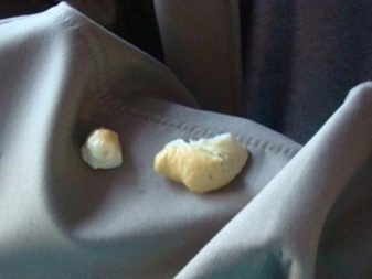 Dans le premier cas, les vêtements sont soigneusement emballés dans un sac en plastique, tandis que le morceau de tissu contaminé doit faire saillie vers l'extérieur. Ensuite, la chose doit être retirée au congélateur jusqu'à ce que les taches de mousse gèlent. Une fois le mastic renforcé, la zone contaminée est coupée avec une lame de couteau. La mousse restante peut être éliminée avec un solvant.À la fin des vêtements doivent être bien lavés.