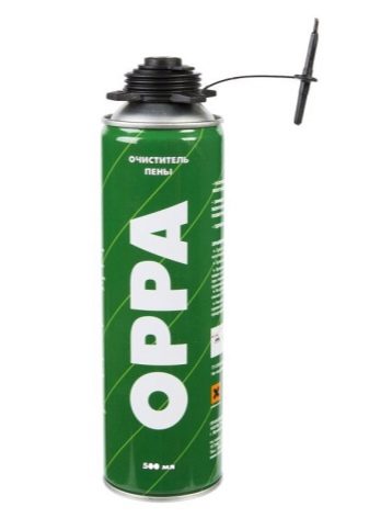 - Nettoyant "Oppa" conçu pour éliminer le mastic de mousse de polyuréthane résiduel des pistolets de montage. Cependant, cet outil résiste à la saleté de la mousse et à d'autres surfaces. Le mélange est disponible en aérosol de 500 ml. De nombreux maîtres recommandent d'utiliser exactement le nettoyant "Oppa". Le mélange est tombé en amour avec les clients pour leur qualité et leur faible coût. Les inconvénients incluent une consommation élevée de la solution.