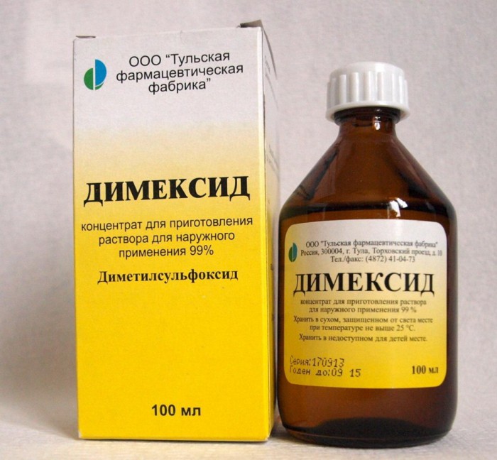 Le diméthylsulfoxyde aidera à faire face aux taches anciennes. L'outil peut être acheté dans n'importe quelle pharmacie. La solution est communément appelée «dimexide». Trempé dans une telle composition de coton imbibé impose sur la zone contaminée et laisse pour une bonne imprégnation pendant environ une demi-heure.