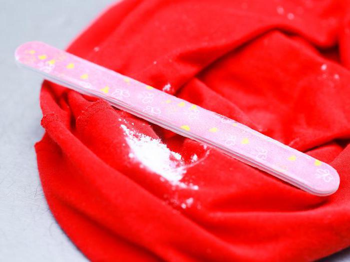 L’élimination de cette pollution est essentielle: elle doit être imprégnée de la même substance qui est à la base du correcteur. Si vous essayez de laver une veste à base d'alcool à la maison, attendez tout d'abord que celle-ci soit complètement sèche et, entre-temps, procurez-vous un remède contenant de l'alcool. Ensuite, essayez soigneusement de gratter mécaniquement la peinture des vêtements: en utilisant une lime à ongles avec un revêtement abrasif doux, une vieille brosse à dents ou une sorte d’objet à angle arrondi.