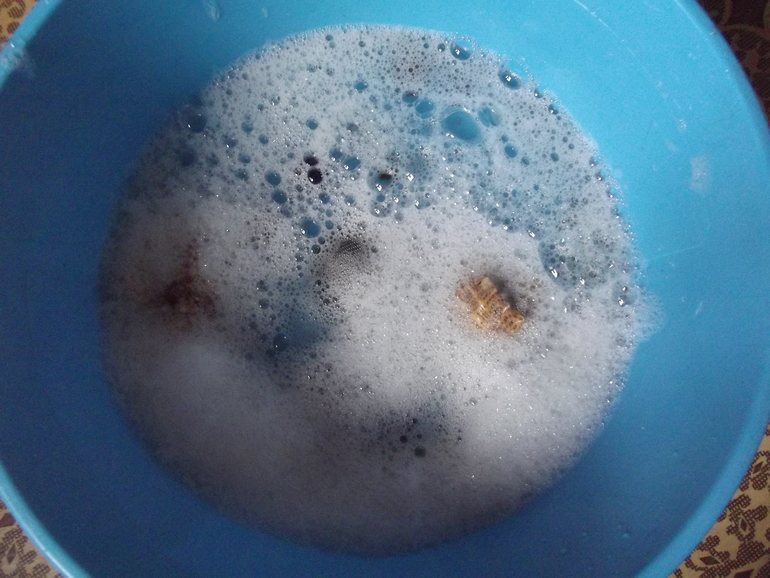 - Tout d’abord, diluez le savon à lessive ou le détergent à lessive dans un lavabo avec de l’eau aussi froide que possible (de telles touches craignent les basses températures);