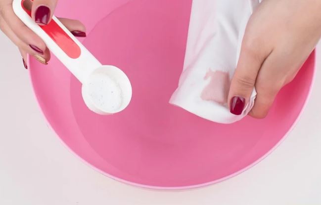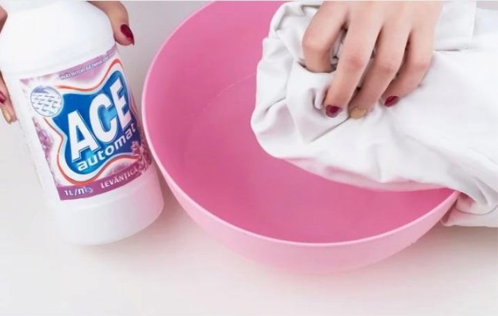 Dans cette composition, il est nécessaire de faire tremper le morceau de tissu souillé pendant vingt minutes et, une fois la chose trempée, vous pouvez facilement enlever la saleté, en étirant le tissu.