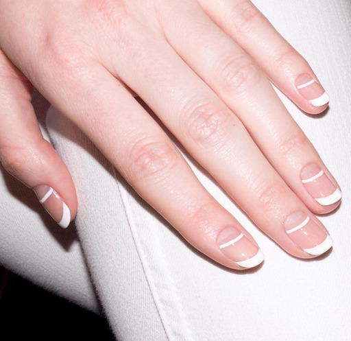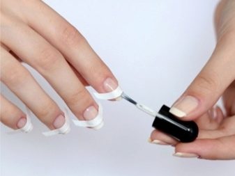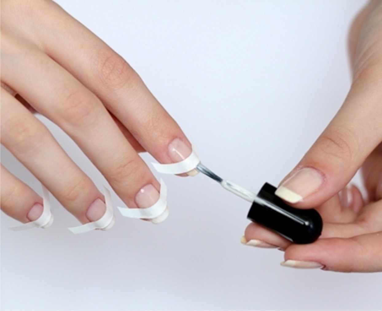 Après cela, une bande de couleur blanche est appliquée sur le bout de l'ongle (à la main ou au pochoir). Traditionnellement, cette ligne peut être droite ou prendre la forme d'un croissant.
