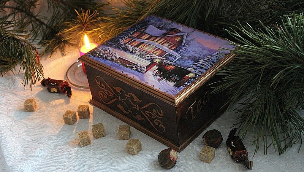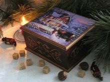 Boîte à bijoux comme chaque filleule et marraine, quels que soient leur âge et leur profession. Vous pouvez le faire en technique de découpage, en décorant avec une belle image de thèmes de Noël. Un beau cadeau pour les amateurs d’art décoratif sera un ensemble pour les images de broderie avec des perles.