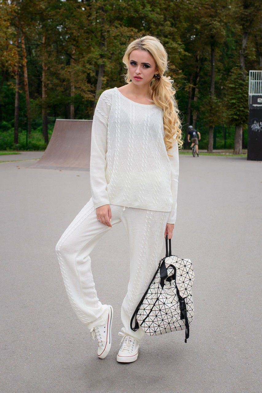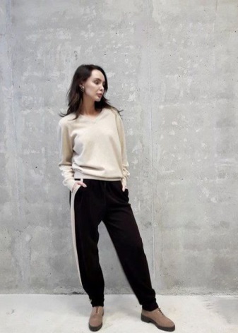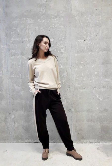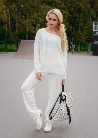 Lorsque vous choisissez des chaussures pour un vêtement de sport tricoté pour femme, il convient de privilégier la combinaison classique pour un style sportif et de porter des baskets ou des baskets. Cependant, la mode ne reste pas immobile et les concepteurs incitent maintenant à faire les expériences les plus audacieuses et à combiner les costumes avec des chaussures différentes. Par exemple, un costume tricoté avec des bandes élastiques sur les manches et les jambes aura fière allure avec des sandales à pieds nus, des ballerines ou des mocassins.