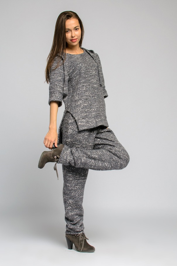 Les concepteurs utilisent toutes sortes d'éléments décoratifs pour les costumes tricotés pour femmes dans leurs collections. Il peut s'agir de cagoules volumineuses, de poches plaquées, de kangourous, de divers accessoires pour chandail ou pantalon, de poignets, de manches d'une coupe inhabituelle.Tous les fantasmes de concepteurs peuvent être réalisés lors de la création d'un nouveau modèle de costume tricoté pour femme, qui mettra l'accent sur l'individualité.