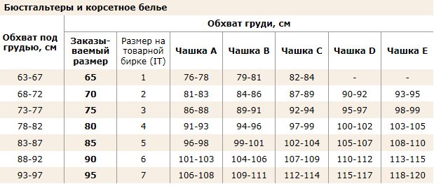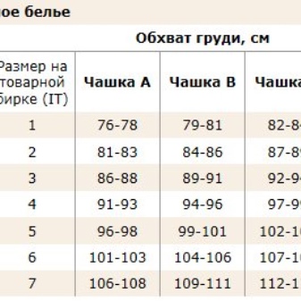 วิธีที่ง่ายที่สุดในการเลือกชุดชั้นในคือหันไปที่โต๊ะขนาดยุโรป - สัญลักษณ์แบ่งออกเป็นตัวอักษร (เต็มถ้วย) และหมายเลข (ปริมาตรของวงกลมใต้อก)