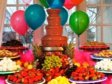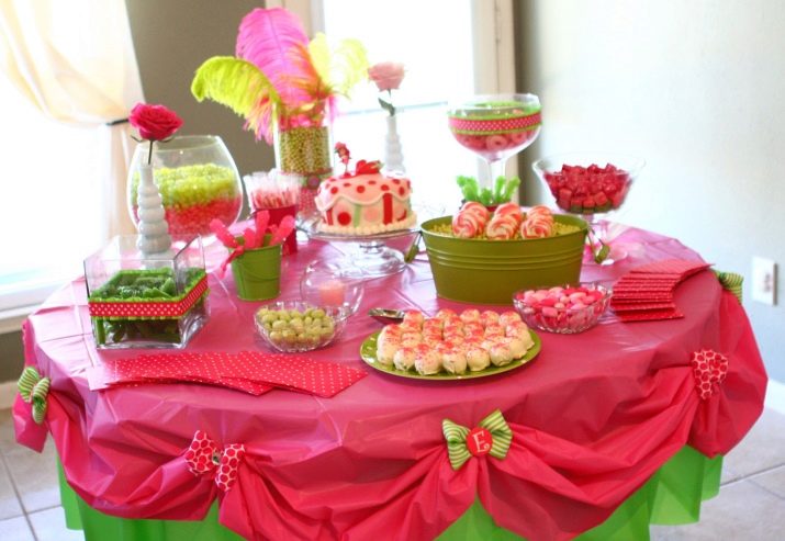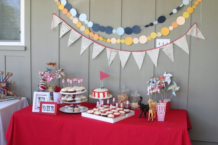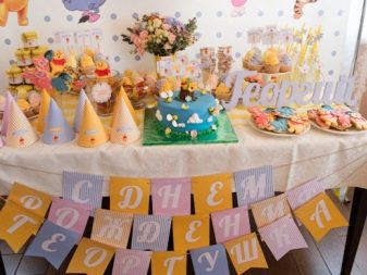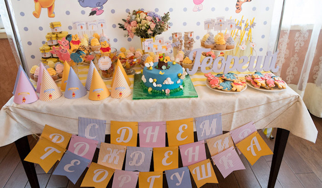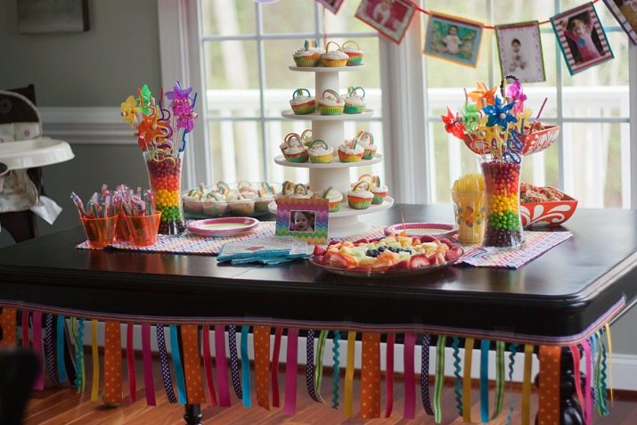 - สำหรับการเฉลิมฉลองของเด็ก ๆ มันคุ้มค่าที่จะจัดโต๊ะด้วยวิธีพิเศษ มันควรได้รับการตกแต่งอย่างสวยงามและคุณสามารถวางผลไม้และขนมหวานไว้มากมาย แน่นอนว่ารูปแบบของกิจกรรมและการนำไปใช้นั้นขึ้นอยู่กับอายุของเด็ก ตัวอย่างเช่นหากเด็กหญิงอายุหนึ่งปีห้ามมิให้ทำการตกแต่งทุกอย่างด้วยปุ่มสีชมพูและสร้างตารางสุดพิเศษจากซีรีย์ Disney Princessแต่เด็กจะเหมาะกับสีฟ้าสีเขียวสีเหลืองและการปรากฏตัวของการตกแต่งในรูปแบบของเครื่องจักรและรายการอื่น ๆ ที่ทารกมีความสนใจ