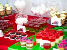 บนโต๊ะไม่ควรเป็นขนมหวานเท่านั้น ตกแต่งวันหยุดและผลไม้ได้อย่างสมบูรณ์แบบรวมทั้งผลเบอร์รี่ถั่วหรือโยเกิร์ต ยังคงคุ้มค่าที่จะสะสมในน้ำและน้ำอัดลมเพื่อให้เพียงพอสำหรับทุกคน
