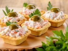 อีกวิธีที่ง่ายต่อการทำให้แขกผู้เข้าพักพอใจ - tartlets. พวกเขาสามารถใส่สลัดใดก็ได้ที่ถูกใจเด็ก ดังนั้นด้วยการใช้จินตนาการและทักษะของคุณคุณสามารถทำให้แขกพอใจด้วยอาหารอร่อย