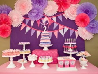 ควรคำนึงถึงอายุของเด็กด้วย ตัวอย่างเช่นหากทารกอายุ 1-2 ปีส่วนใหญ่ในงานเลี้ยงวันเกิดพ่อแม่ของแขกจะมาร่วมงานด้วย จากนั้นคุณต้องพิจารณาเมนูอย่างละเอียดสำหรับผู้ใหญ่ ในเวลาเดียวกันในการตกแต่งห้องและตารางควรอยู่ในแนวคิดเดียว เด็กจะมาจากวัยเด็กโอบกอดความสวยงามเช่นเดียวกับการดูภาพที่มีสีสันที่จะช่วยให้กำลังใจ