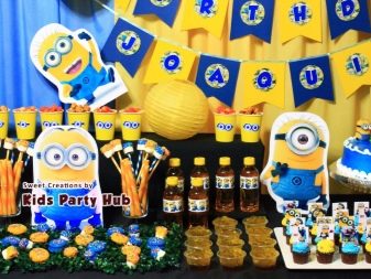 เด็กที่ทันสมัยเพียงแค่รักการ์ตูน "ลูกน้อง" ตัวละครตลกเหล่านี้จะช่วยจัดวันหยุดที่แท้จริงสำหรับเด็ก ๆ ซึ่งจะเต็มไปด้วยอารมณ์เชิงบวกที่สดใส ที่นี่คุณสามารถจัดเรียงโต๊ะตามธีมรวมถึงวางคัพเค้กในรูปแบบของตัวละครหลักของการ์ตูน จัดทำภาพรวมของภาพงานฉลองของลูกน้องที่ต้องแขวนบนผนัง