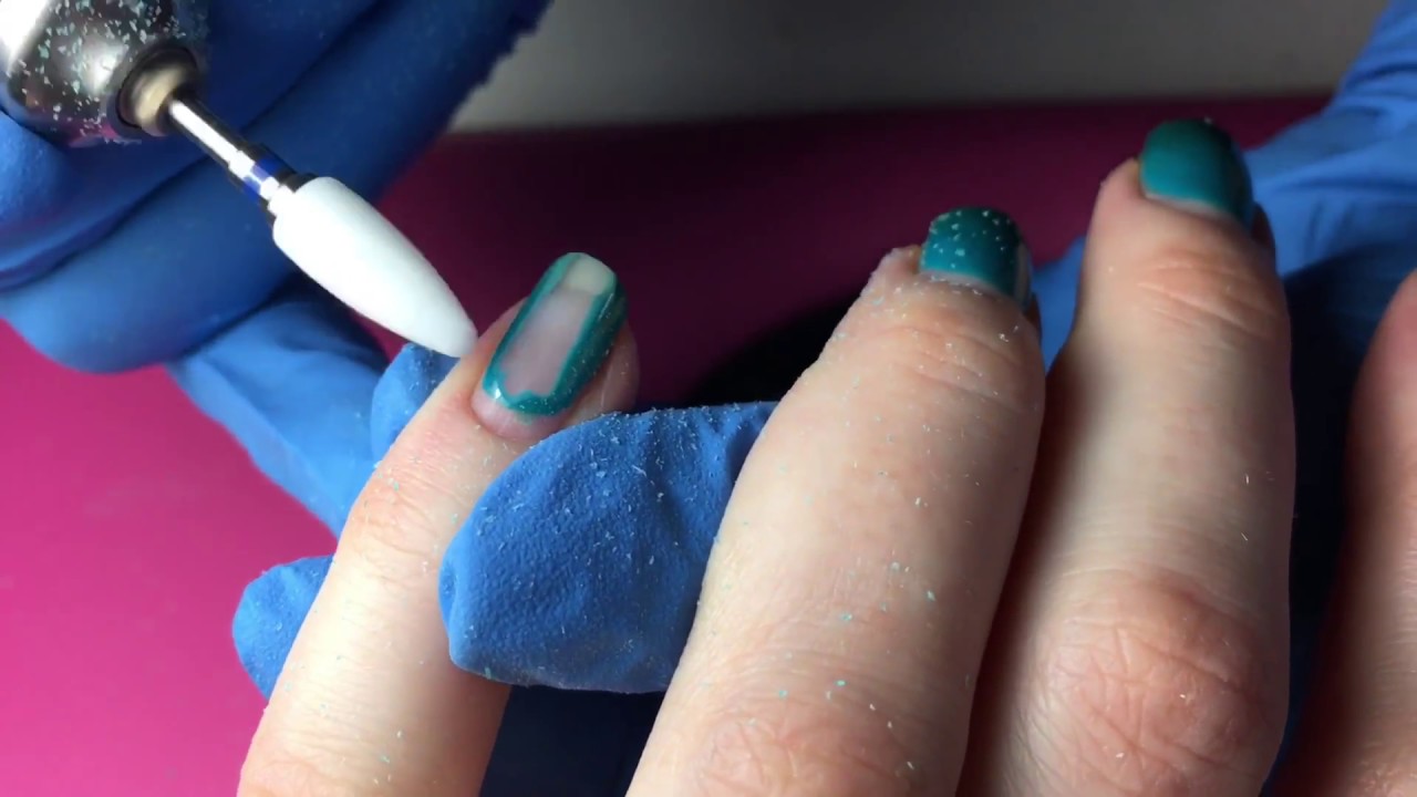 เอาการเคลือบเก่าออกแช่ด้วยผ้าเช็ดปากที่ชุบน้ำยาล้างเจล หลังจากนั้นชั้นเคลือบเก่าติดกับแท่งสีส้มแล้วนำออก ด้วยการทำเล็บด้วยฮาร์ดแวร์การเคลือบแบบเก่าจะถูกกำจัดด้วยเครื่องตัดมิลลิ่งดังนั้นในกรณีนี้ไม่จำเป็นต้องใช้น้ำยาล้างเล็บเจลเพื่อกำจัดยาทา