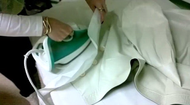 - หากคุณจำเป็นต้องปรับปลอกแขนเสื้อหรือองค์ประกอบอื่น ๆ ให้เรียบร้อยแม่บ้านมีประสบการณ์แนะนำให้ใช้แถบเล็ก ๆ บนโต๊ะรีดผ้า ดังนั้นคุณจะได้รับผลลัพธ์ที่ดีอย่างรวดเร็วและรอบคอบ