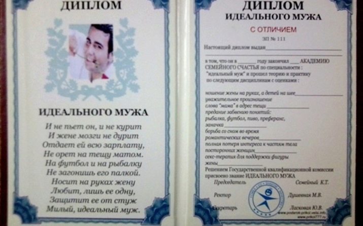 หากคู่สมรสที่มีอารมณ์ขันและรักไม่เพียง แต่เป็นของดั้งเดิม แต่เป็นของกำนัลที่ตลกคุณควรสั่งการ์ตูนหรือตุ๊กตาตัวจริงซึ่งจะเป็นสำเนาของสามีของเธอ
