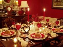 ตามธรรมเนียมแล้วโต๊ะตกแต่งด้วยแจกันด้วยกุหลาบสีแดงเข้ม แต่คุณยังสามารถเลือกองค์ประกอบจากสีอื่น ๆ ภาพถ่ายครอบครัวคุณลักษณะงานแต่งงานลูกบอลและมาลัยดอกไม้เหมาะอย่างยิ่งในการตกแต่งผนัง