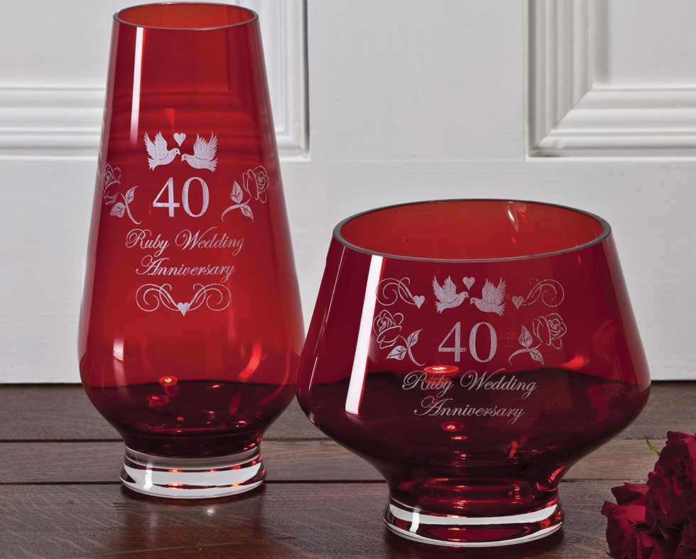 - เครื่องประดับนั้นมีความเกี่ยวข้องเสมอ ตามประเพณีเป็นเวลา 40 ปีจากวันแต่งงานมันเป็นประเพณีที่จะให้เครื่องประดับด้วยทับทิมซึ่งจะกลายเป็นเครื่องรางของขลังสำหรับครอบครัว สำหรับแม่คุณสามารถเลือกต่างหู, โซ่พร้อมจี้, สร้อยคอ, สร้อยข้อมือ, เข็มกลัดหรือแหวนและสำหรับพ่อคุณสามารถเลือกกระดุมข้อมือ, คลิปผูก, แหวน, สร้อยข้อมือหรือนาฬิกา