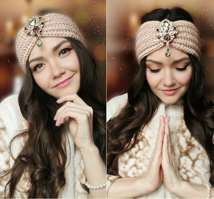 Dressing-turban นั้นโดดเด่นด้วยความสะดวกสบาย สไตล์ที่ทันสมัยนี้มีความกว้างขนาดใหญ่และในศูนย์ตกแต่งด้วยปมที่ประณีต