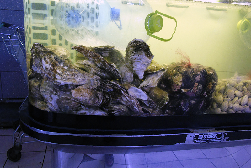 หอยกินตะกอนอินทรีย์สาหร่ายและสิ่งมีชีวิตขนาดเล็ก ในฟาร์มที่ทำลายน้ำเปิดมีเทคโนโลยีทั้งหมดสำหรับการให้อาหารที่สมดุลของหอย หากที่บ้านมีโอกาสที่จะวางหอยนางรมในทะเลสาบทางทะเลของแหล่งกำเนิดตามธรรมชาติแล้วสิ่งนี้จะช่วยอำนวยความสะดวกในกระบวนการให้อาหารของหอย สามารถซื้ออาหารสำหรับการปรับปรุงบ้านในฟาร์มพิเศษ