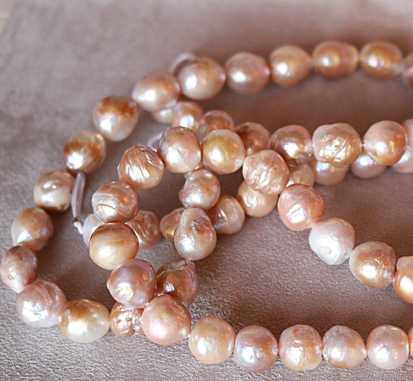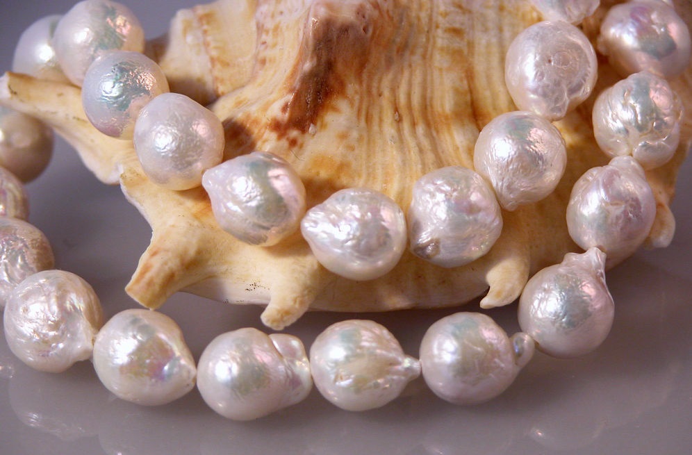 ขนาดของลูกปัดมีความแตกต่างกัน: เนื่องจากความจริงที่ว่ามีเพียงสิ่งกระตุ้นเดียวที่พบในหอยทะเลมุกของพวกเขามีขนาดใหญ่กว่าที่ผลิตโดยหอยน้ำจืด เครื่องประดับที่มีต้นกำเนิดจากทะเลสามารถเข้าถึง 20 มม. ในขณะที่ค่าเฉลี่ยสำหรับเครื่องประดับน้ำจืดคือ 5-12 มม.