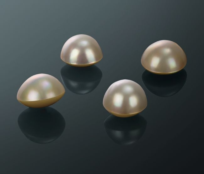 - ซีกโลก อัญมณีของวาไรตี้นี้มีลักษณะภายนอกคล้ายกับทรงกลมแบนเล็กน้อยด้านบนและด้านล่าง ไข่มุกชนิดเดียวกันซึ่งผลิตโดยนักวิจัยชาวญี่ปุ่นชื่อเคมิกิโมโตะ (Mabe หลากหลายชนิด) ได้รับอนุญาต
