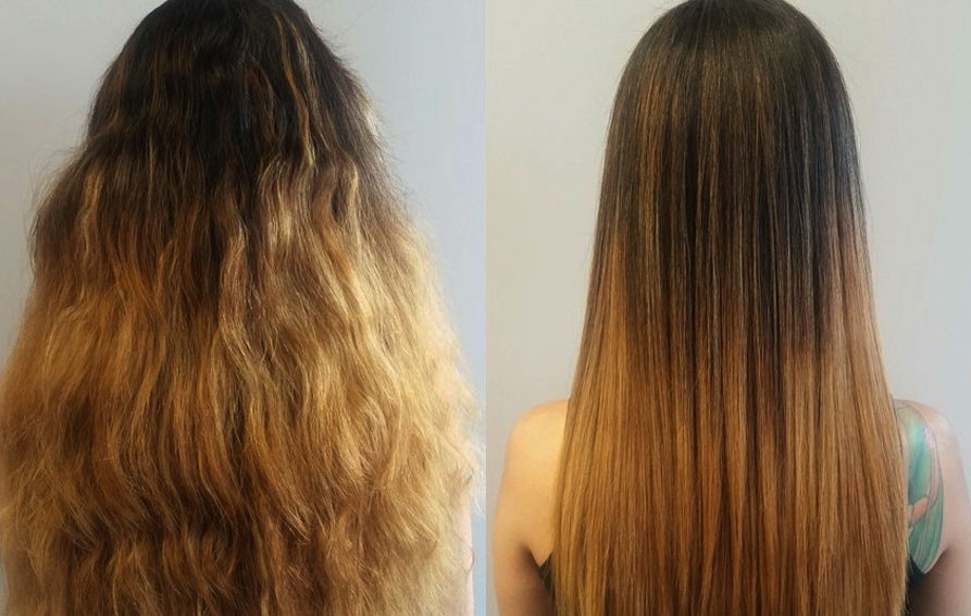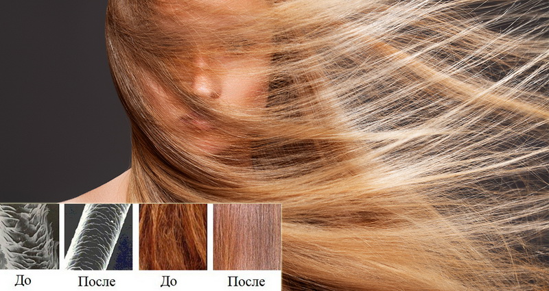ขั้นตอนการยืดผมตรงโดยใช้องค์ประกอบของเคราตินเป็นการใช้งานอย่างค่อยเป็นค่อยไปขององค์ประกอบนี้และผลของการ "ผนึก" ภายในเส้นผมภายใต้อิทธิพลของการรีดผ้าที่ค่อนข้างร้อน เมื่อทำการแทรกซึมเข้าไปในเส้นผมองค์ประกอบก็จะเติมเต็มโครงสร้างของเส้นผมทำให้เส้นผมของลูกค้าแข็งแรงขึ้นและอ่อนนุ่มอย่างน่าประหลาดใจ