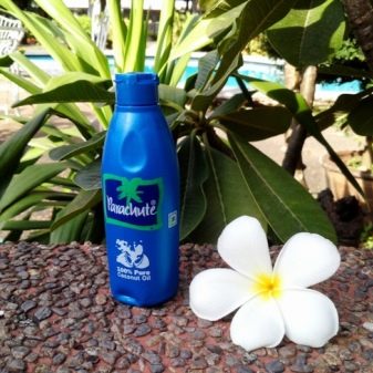 น้ำมันมะพร้าวสามารถใช้ได้ตลอดทั้งปีและในฤดูร้อนมันเป็นสารฟอกหนังที่ยอดเยี่ยม เมื่อนำผลิตภัณฑ์ไปใช้กับผิวคุณไม่ต้องกลัวที่จะถูกแดดเผานอกจากนี้ผิวสีแทนหลังจากการใช้มันจะสวยงามและสม่ำเสมอ นี่คือการรักษาธรรมชาติที่ปลอดภัยอย่างแน่นอนที่แนะนำให้ใช้ไม่เพียง แต่สำหรับผู้ใหญ่ แต่ยังสำหรับเด็กตั้งแต่แรกเกิด น้ำมันมะพร้าวช่วยลดการระคายเคืองและการอักเสบ ควรทาก่อนนอนและหลังขั้นตอนนี้ หากผลิตภัณฑ์ถูกนำไปใช้กับใบหน้า Cosmetologists แนะนำให้ลบส่วนเกินของมันหลังจากไม่กี่นาที