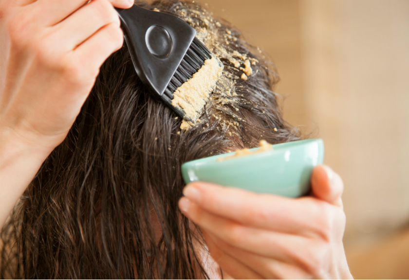 การจัดเตรียม พริกไทยและอบเชยผสมในชามเดียวกัน จากนั้นใส่เนยและกาแฟลงในส่วนผสม ทั้งหมดผสมกันอย่างดีและผลิตภัณฑ์ที่ได้จะถูกนำไปใช้กับผมที่เปียก มันถูลงบนหนังศีรษะแล้วทิ้งไว้ประมาณ 5-7 นาที หลังจากปอกเปลือกแล้วล้างออกด้วยน้ำอุ่นและแชมพู