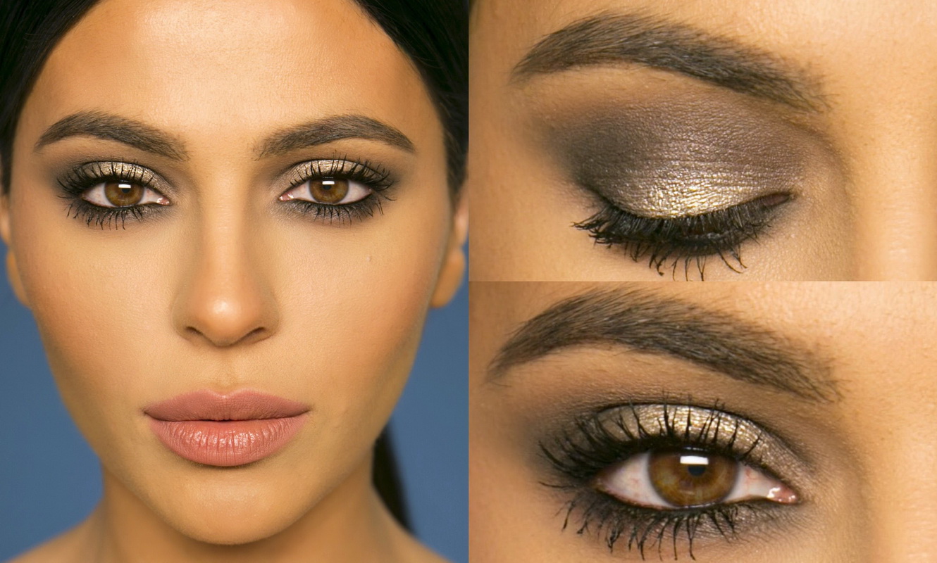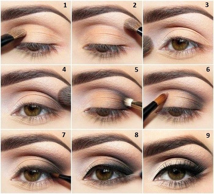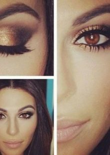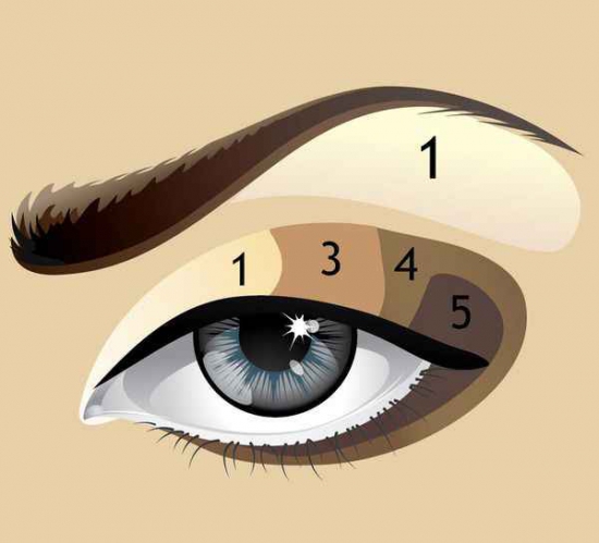 - หญิงสาวที่มีสีน้ำตาลของม่านตา สามารถใช้เป็นโทนแสงหลักสีเบจ, พีช ที่มุมด้านนอกของเปลือกตาบนอนุญาตให้ใช้สีน้ำตาลเข้มหรือสีกากีรวมทั้งเฉดสีเขียวที่ปิดสนิทอื่น ๆ