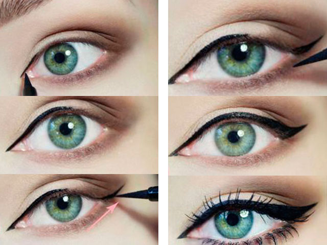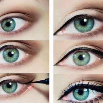 ตามการเจริญเติบโตของขนตาบนขอแนะนำให้กำหนดอายไลเนอร์ที่เป็นของเหลว ใช้มันเป็นไปได้ที่จะขยายตาเฉพาะในกรณีที่เครื่องสำอางถูกนำไปใช้กับเส้นบาง ๆ (น้อยกว่าสองมิลลิเมตร) ระหว่างสายปรับเลนส์และอายไลเนอร์ไม่ควรอยู่ในบริเวณที่ไม่ได้วาด เพื่อให้มองเห็นได้มากขึ้นคุณควรวาดลูกศรขนาดเล็กที่ชี้ขึ้น