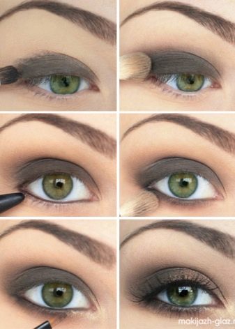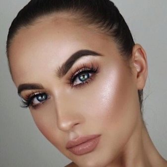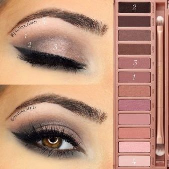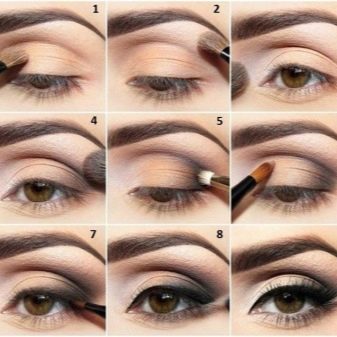 - การแต่งหน้าในเวลากลางวันมัก จำกัด เฉพาะขั้นตอนเหล่านี้และในช่วงเย็นจะมีการใช้โทนสีซีดไม่เพียง แต่ที่มุมด้านใน แต่ยังรวมถึงใต้หลังคาด้วยเทคนิคนี้ช่วยให้มองเห็นเงางามเป็นพิเศษ