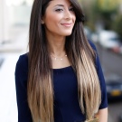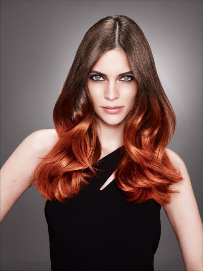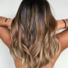 - เทคนิค Ombre แนะนำให้เปลี่ยนจากรากสีเข้มเป็นสีคาราเมลหรือสีอ่อนกว่าที่ปลาย ความนุ่มนวลของการเปลี่ยนภาพนั้นเกิดขึ้นได้ด้วยการเพิ่มโทนเสียงเพิ่มเติมที่ขอบเขตของเสียงหลักทั้งสอง
