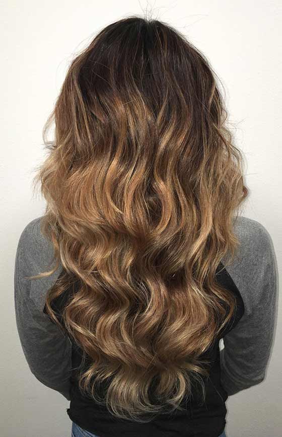 - ombre สีทองบนผมสีน้ำตาลจะให้ภาพของความสง่างามโดยเฉพาะถ้าคุณทำหยิก