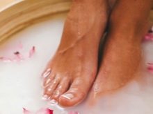 หลังจากสิบห้านาทีคุณสามารถทำความสะอาดเพิ่มเติมและขัดเท้าด้วยหินภูเขาไฟ เนื่องจากผิวหนังหลังการอาบน้ำกลายเป็นนึ่งและนุ่มแล้วการกำจัดเซลล์ผิวที่หยาบกร้านและเซลล์ที่ตายแล้วนั้นไม่ยาก หลังจากขั้นตอนการล้างเท้าของคุณในน้ำสะอาดน้ำอุ่นและเช็ดให้แห้งด้วยผ้าขนหนูนุ่ม อย่าเช็ดเท้าอย่างแรงเกินไปเพื่อไม่ให้ผิวที่บอบบางเกิดความเสียหาย เป็นการดีที่สุดที่จะห่อเท้าด้วยผ้าขนหนูและปล่อยให้ความชื้นส่วนเกินซึมเข้าสู่เนื้อผ้า ถัดไปคุณควรกางขาด้วยครีมบำรุงผิวที่อ่อนนุ่มหรือชุ่มชื้น ครีมจะแก้ไขปัญหาผลอ่อนผิวและรักษาความชุ่มชื้นในผิว เพื่อให้บรรลุผลตามที่ต้องการสามารถอาบน้ำได้หลายครั้งต่อสัปดาห์