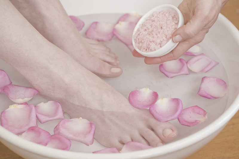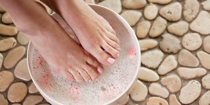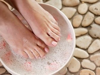กฎสำหรับการทำ footbaths ง่ายมาก ก่อนอื่นคุณต้องเตรียมเท้าให้พร้อมสำหรับขั้นตอนและล้างด้วยน้ำอุ่น คุณควรเลือกอุณหภูมิที่เหมาะสมสำหรับตัวคุณเอง ในระหว่างขั้นตอนน้ำในอ่างอาจเย็นลงจึงอนุญาตให้ใช้น้ำเดือดเกลือทะเลควรละลายในสัดส่วนหนึ่งและครึ่งช้อนโต๊ะต่ออ่างน้ำ คุณไม่สามารถรอให้เกลือละลายอย่างสมบูรณ์ แต่ปล่อยเท้าของคุณลงในอ่างน้ำทันที ผลึกเกลือที่ยังไม่มีเวลาละลายจะให้การนวดเสริมอีกครั้ง (ฝังเข็ม)